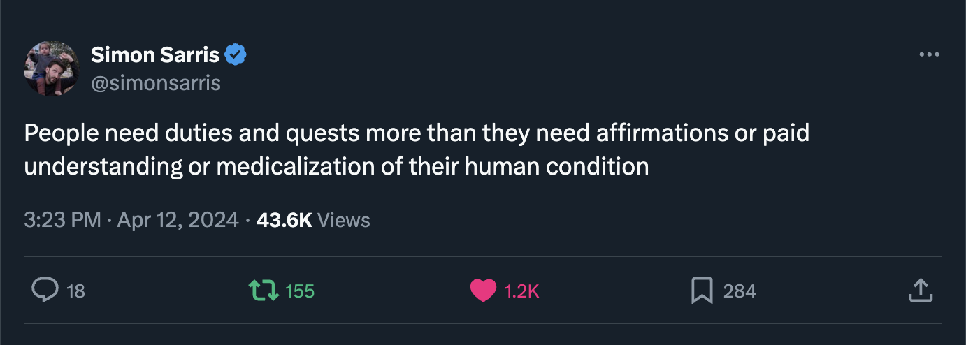 Recently Simon Sarris posted this tweet: